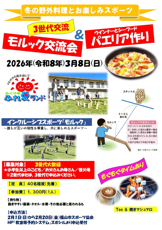 2月1日(日曜日)から2月20日(金曜日)まで福山市スポーツ協会HPの申し込みシステムにて受付