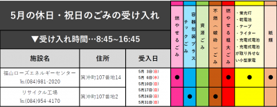 5月の休日・祝日のごみの受け入れ