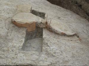 造出部の円筒埴輪出土状況(上部は失われている)