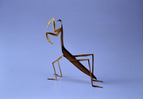 しかし恵祥は、やがて伝統の枠を大きく超えた大胆な造形の作品で日展などを舞台に活躍していくようになります。その手法は、シンプルな真鍮の板金を巧みに構成し、愛らしくも優美な虫や動物たちなどの姿を形づくっていくものでした。